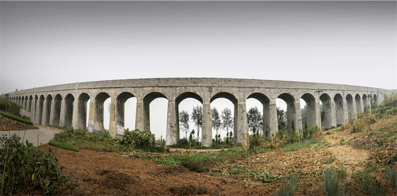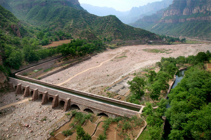 位于任村镇白家庄村南,南谷洞水库下游700米处,横跨露水河,单跨9米,共10孔,故称“十孔渡槽”。始建于1960年2月,1961年8月竣工。