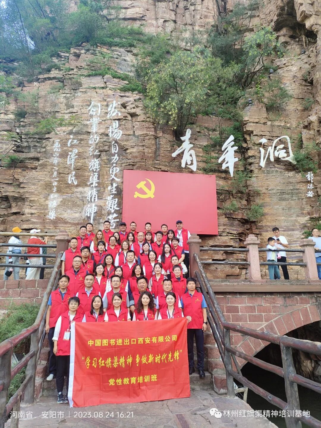 8.21-8.27日,林州红旗渠精神培训基地迎来国家税务总局安阳县税务局“点亮韶光”青年干部政治能力提升班、防城港市烟草专卖局(公司)“弘扬奋斗精神 践行初心使命”党性教育培训班、中共安徽来安农村商业银行股份有限公司委员会“学习弘扬红旗渠精神 推动主题教育走深走实”培训班、2023年常州邮政红色主题教育培训班、中国图书进出口西安有限公司“学习红旗渠精神 争做时代先锋”党性教育培训班、安徽省旌德县人大综合业务培训班、东营两新党委党建实战训练营、梁园区总工会学习贯彻党的二十大精神工会干部培训班、中国石油党校培训班、巢湖农商银行红旗渠精神教育培训班(第二期)、哈尔滨石化公司“三强”干部暨党支部书记专题培训班(第一期)等十余个班次到基地学习。